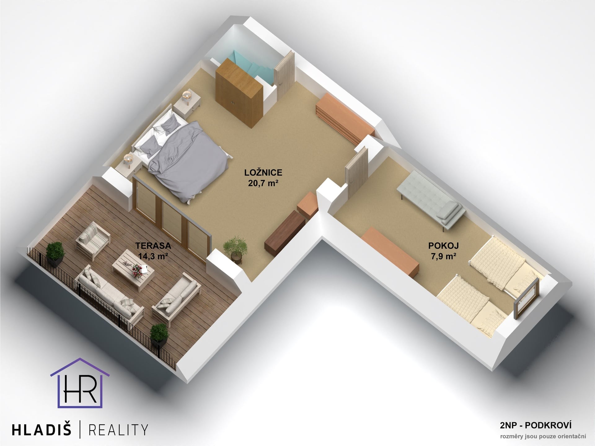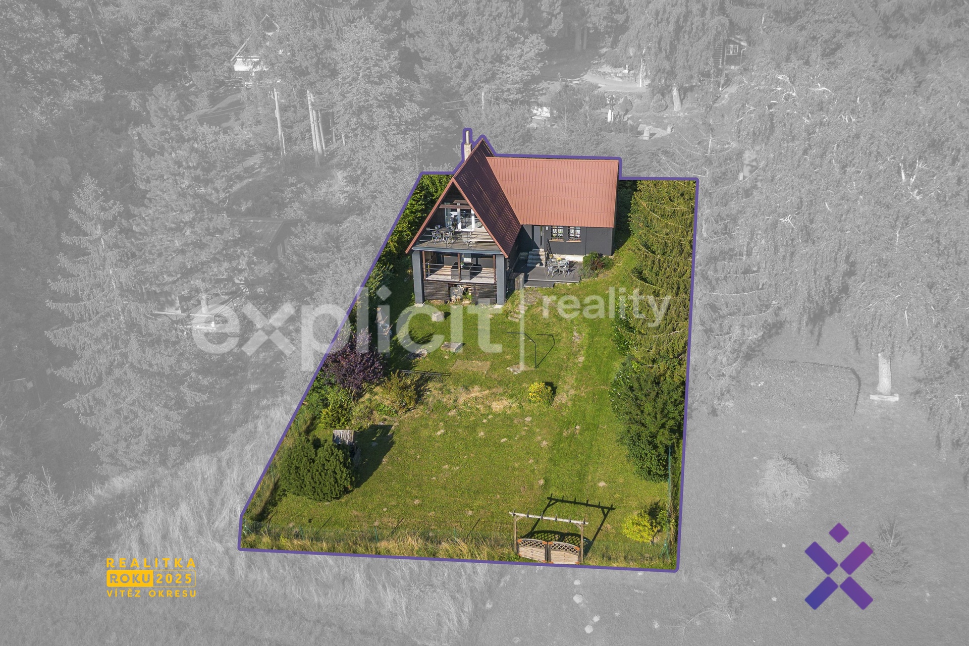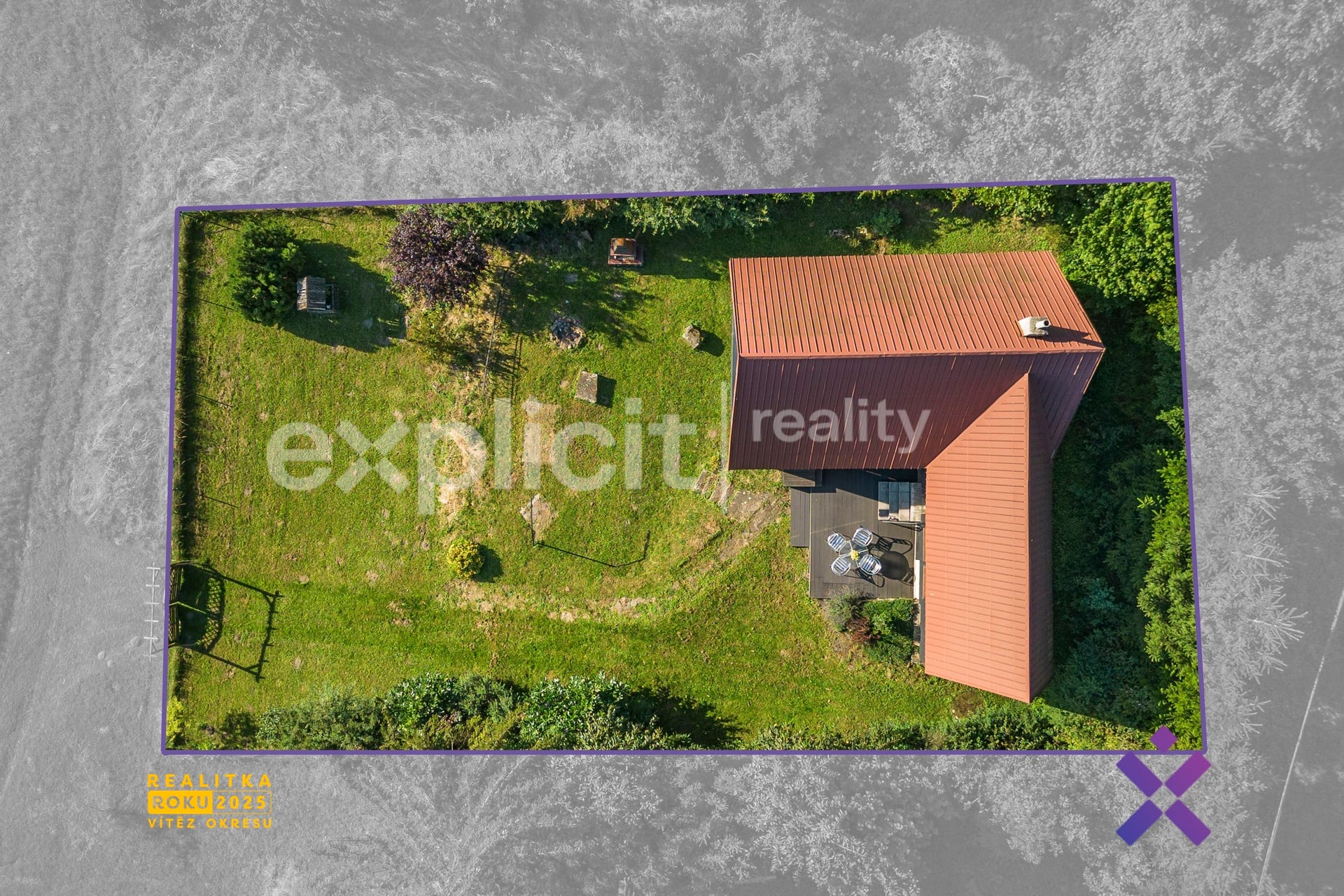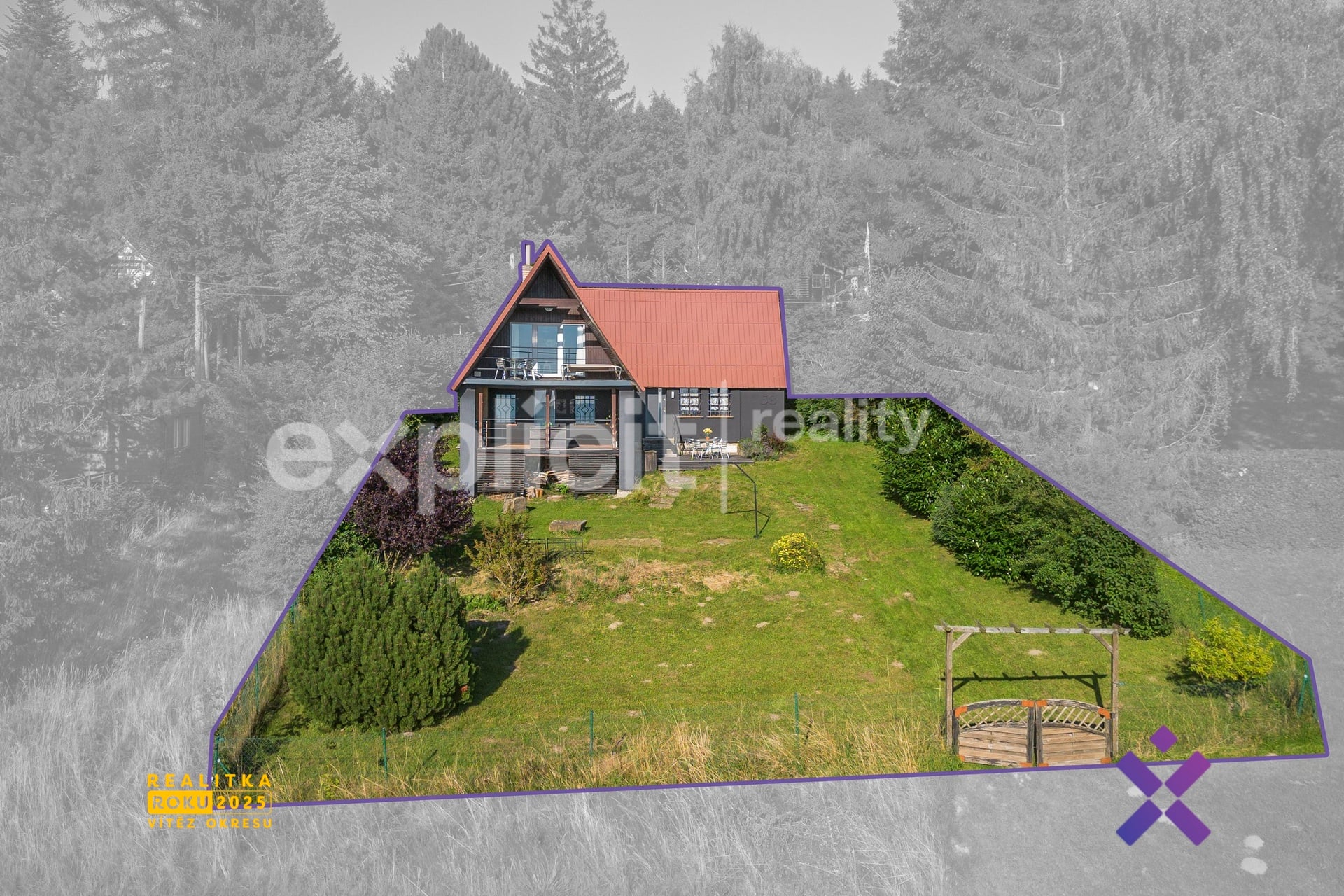 Vizualizace a vyobrazení nemovitosti a pozemku jsou pouze ilustrativní. Závazné údaje o hranicích pozemku jsou uvedeny v katastrální mapě.