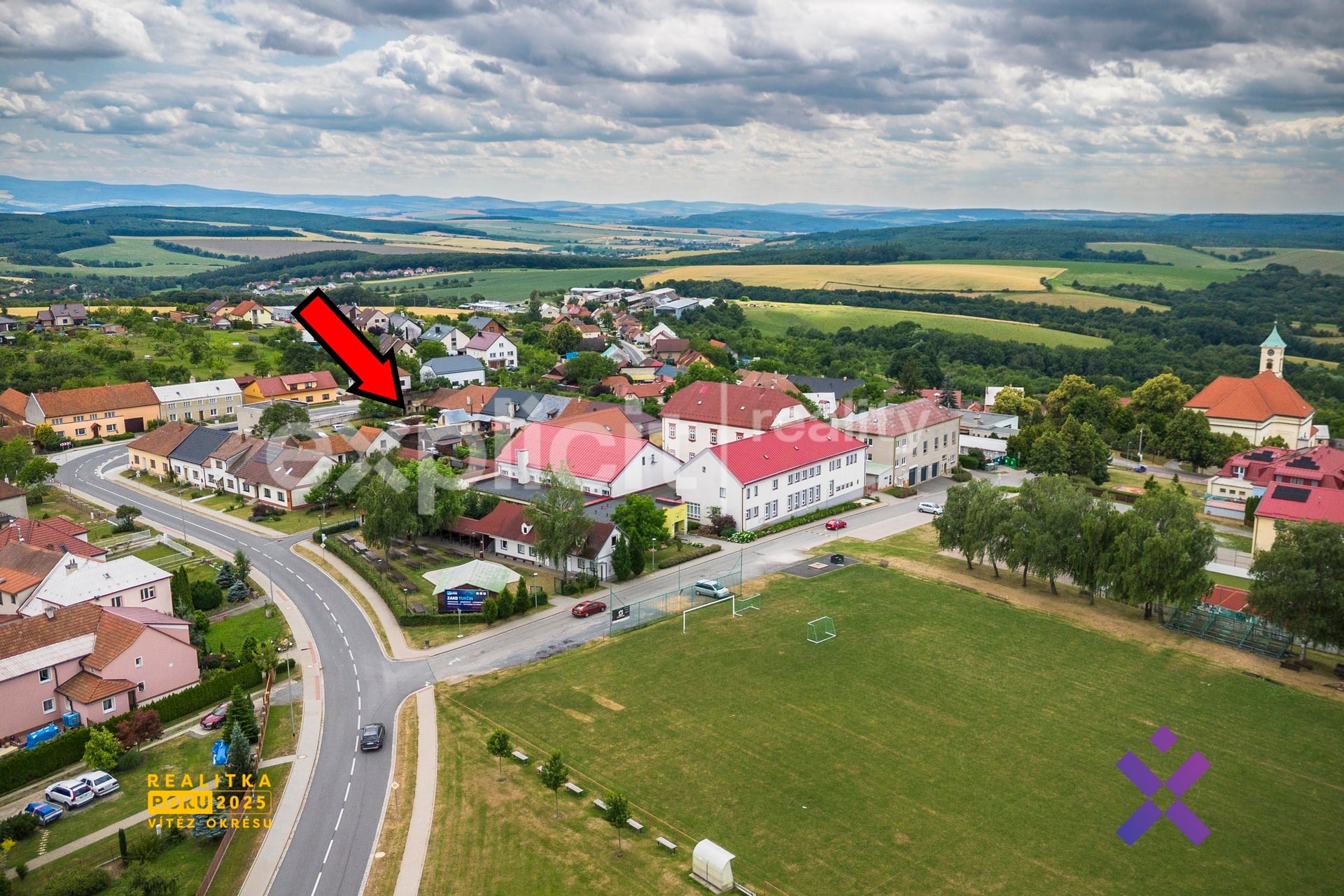 – střed obce, vstup do domu je orientován na západ – příjemné odpolední a večerní světlo